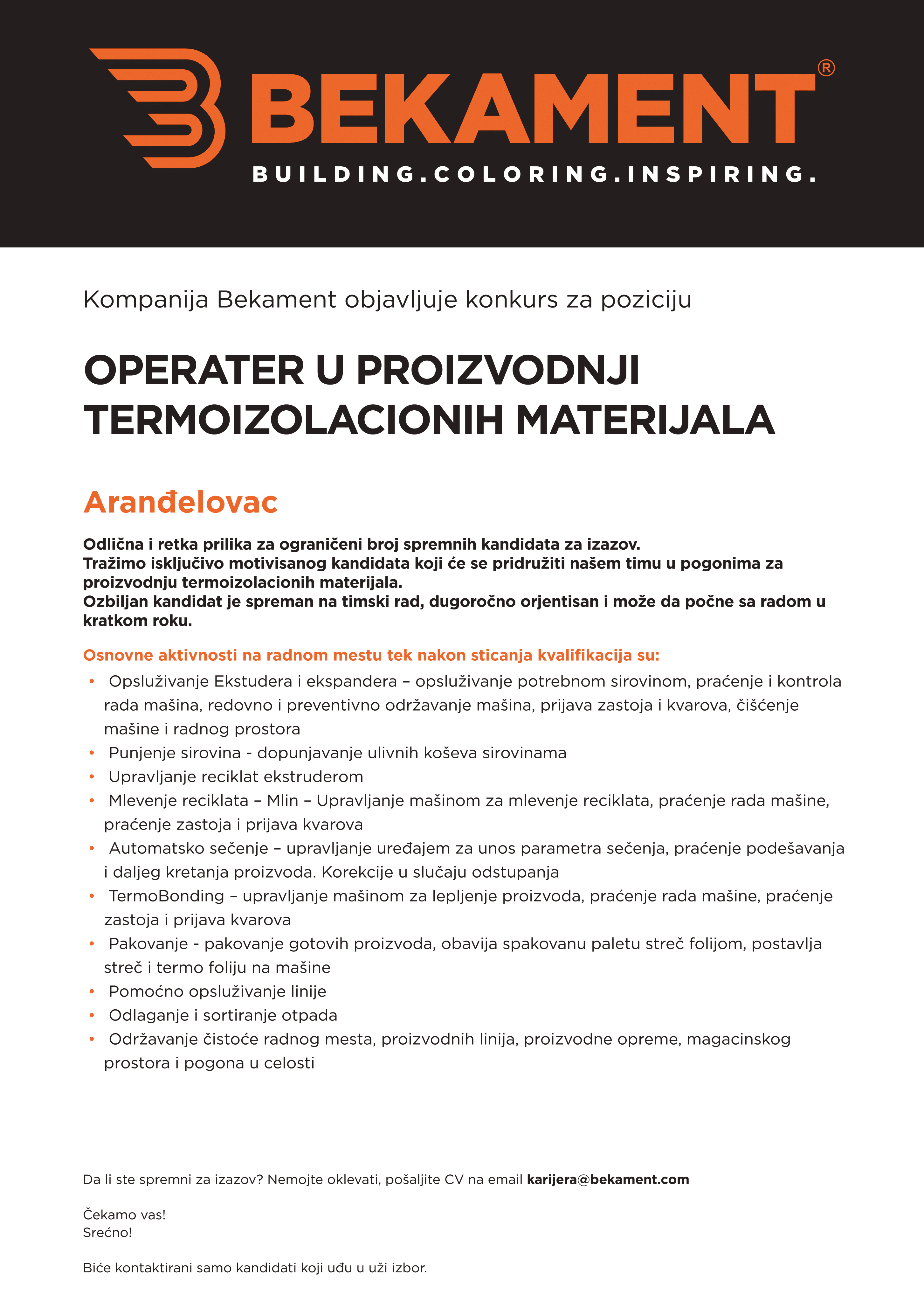 Ukoliko želite da se priključite našem timu zaposlenih i radite za kompaniju koja konstantnim inovacijama, posvećenošću poslu i dugoročnim planiranjem teži da postane lider u regionu Jugoistočne Evrope, molimo Vas da pošaljte Vašu radnu biografiju na mejl